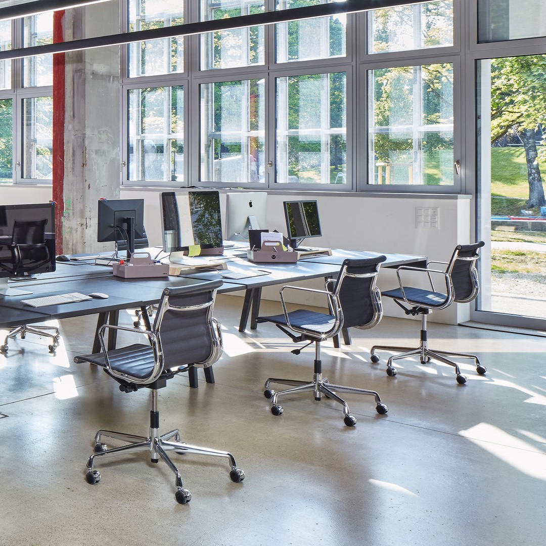 Grâce à son esthétique intemporelle et à son confort ergonomique, la Vitra Aluminium Chair EA trouve naturellement sa place dans :