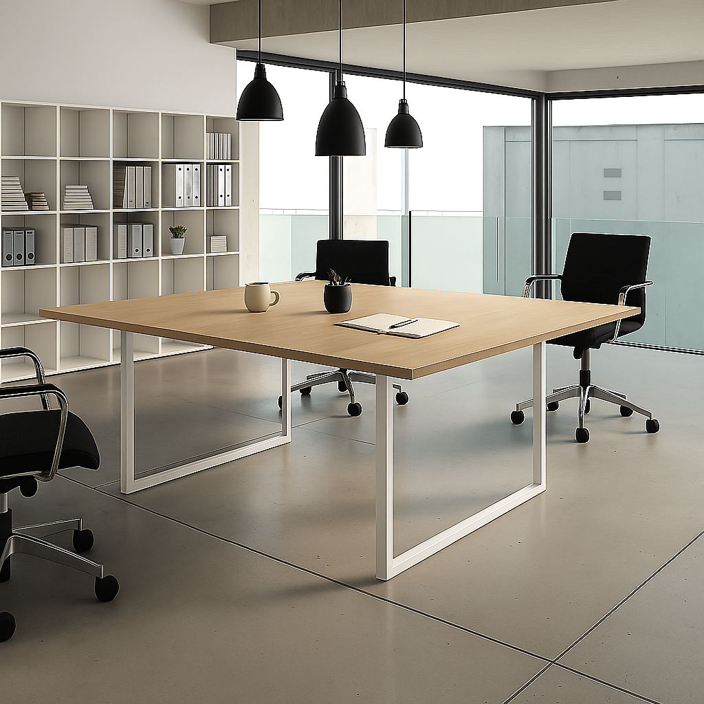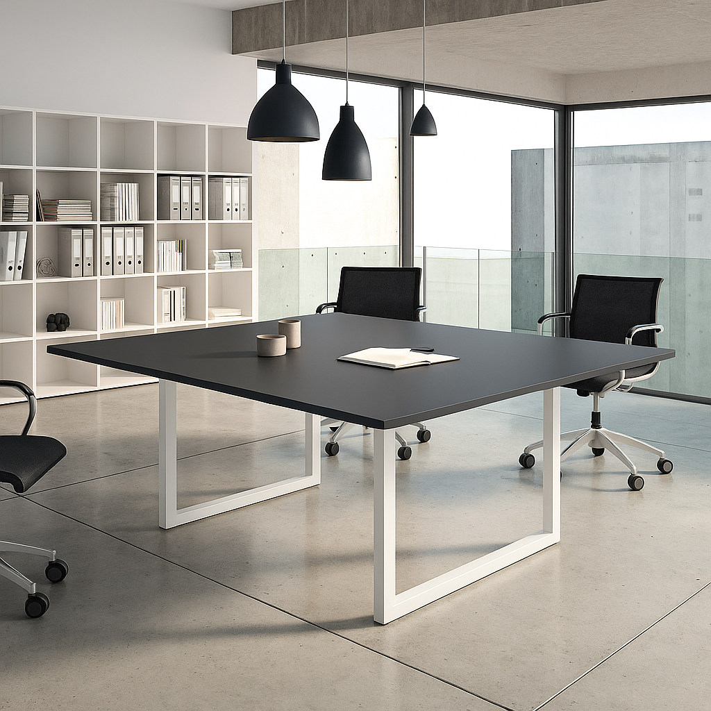 The Be One square meeting table by Frezza, available on the Wooh website, combines contemporary aesthetics, robustness and functionality. Designed for collaborative environments, it encourages exchanges and optimises the organisation of workspaces, whether they be meeting rooms, coworking zones or open spaces.
