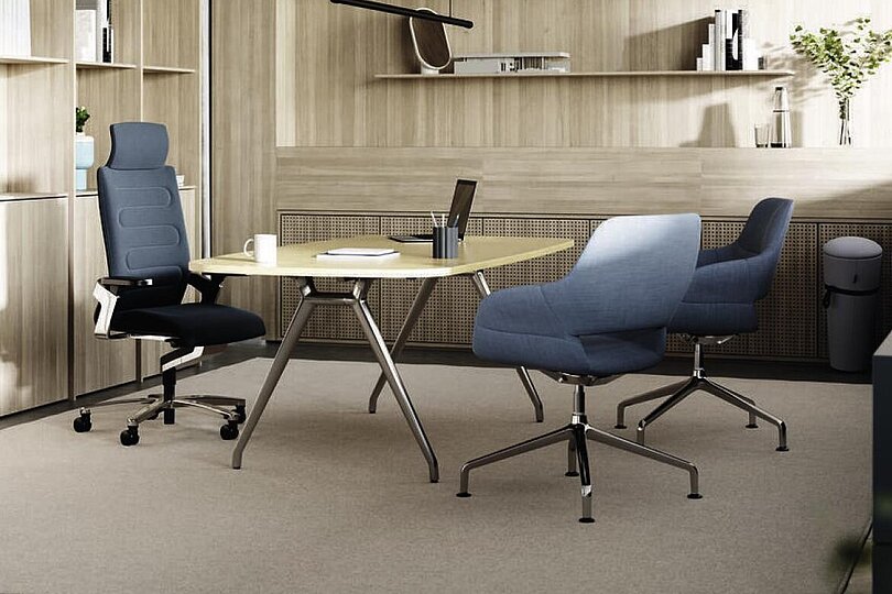 Harmonious and fluid lines blend elegantly into all types of environments: executive offices, conference rooms or collaborative spaces.
