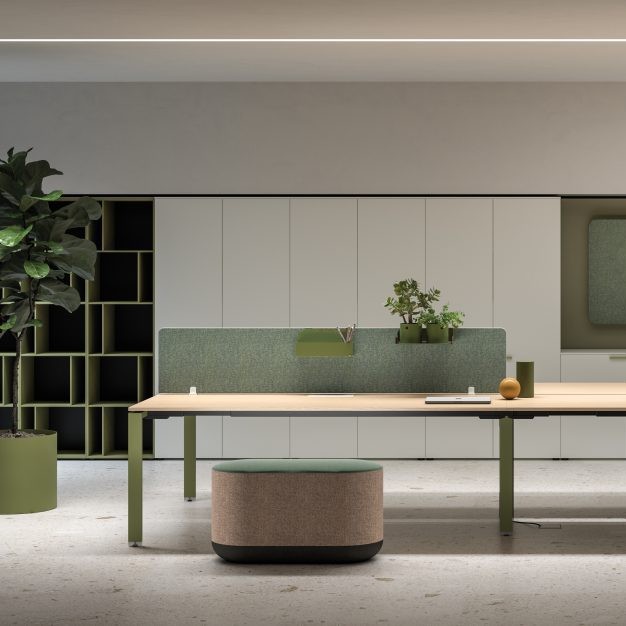 Dankzij zijn modulariteit, stevigheid en geïntegreerde technische oplossingen is het een ideale keuze voor moderne bedrijven die op zoek zijn naar meubilair dat schaalbaar, ergonomisch en inspirerend is.