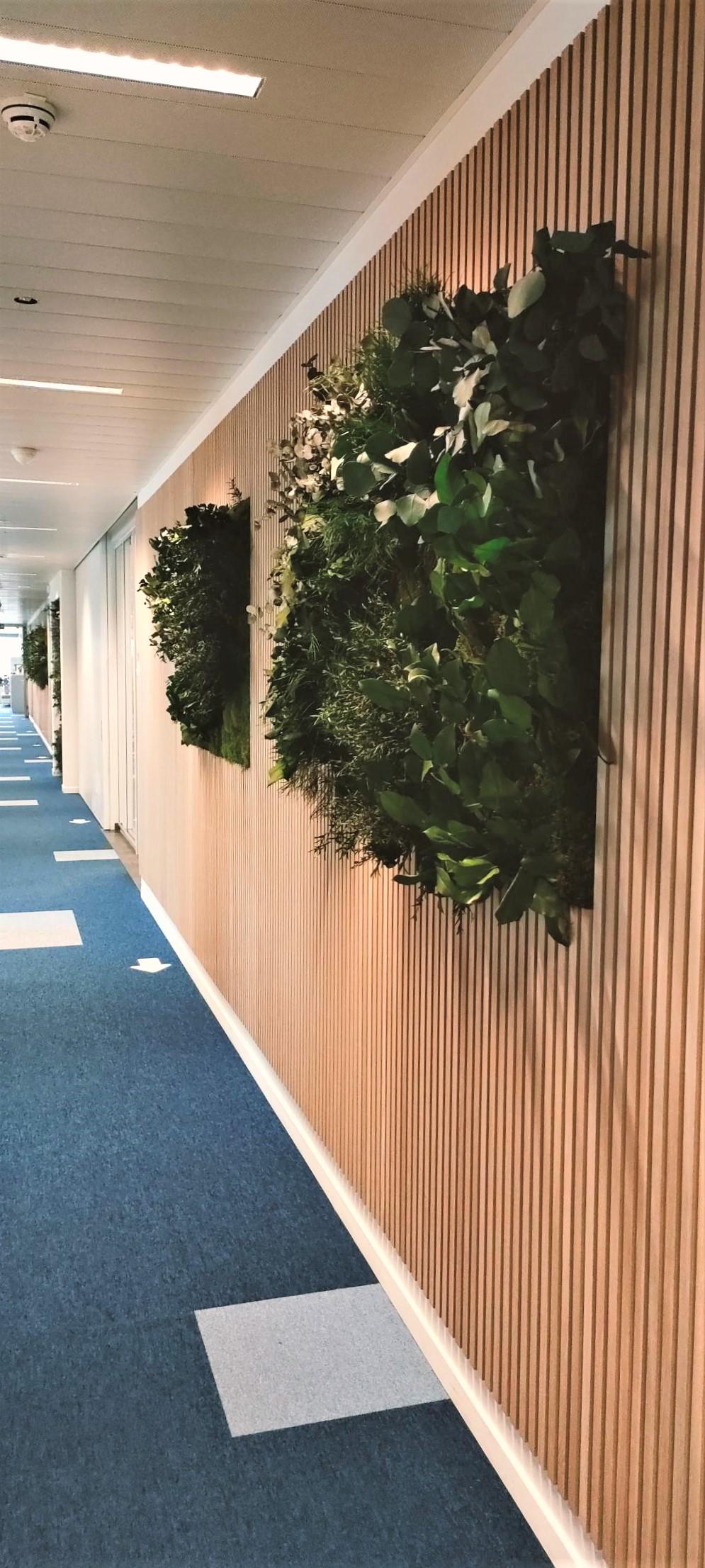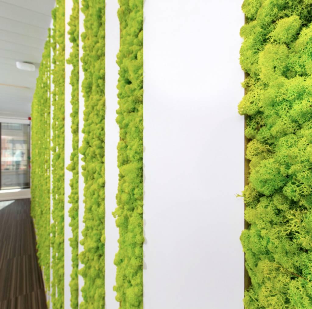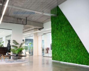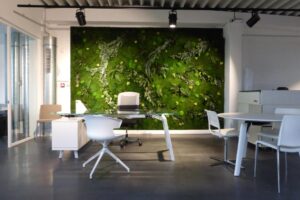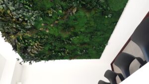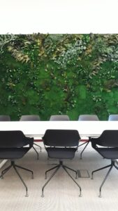 En plus d’ajouter une touche de verdure rafraîchissante à l’environnement de travail, les murs végétaux contribuent à purifier l’air en absorbant le dioxyde de carbone et en libérant de l’oxygène, créant ainsi un espace de travail plus sain et agréable… et tout cela, sans entretien !