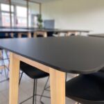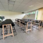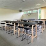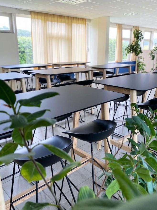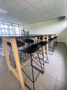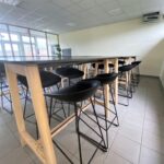 Pour ce projet, il a été question de mobilier, ici ce sont des tables hautes qui ont été choisies. Elles permettent de varier les hauteurs d’assise et apportent donc du confort supplémentaire. En effet, il est important d’alterner les hauteurs tout au long de sa journée que ce soit au travail, chez soi, ou à l’école. L’ergonomie est l’une des choses les plus importantes à laquelle nous devons penser lors de nos conceptions.