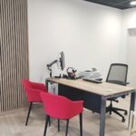 En effet, notre mission pour ce projet a été, dans un premier temps, de proposer un aménagement selon les attentes du client, ensuite, de sélectionner le mobilier par rapport à l’ambiance souhaitée avant de procéder à la livraison et au placement du mobilier ainsi que des éléments de parachèvement tels que le claustra et les panneaux acoustiques en feutre avec bardage en bois.