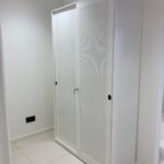 Le mobilier blanc fait ressortir le coté lumineux du bâtiment et les touches noirs des poignées et accessoires rappellent le coté industriel. La chaleur est amenée par les coloris et l’ambiance choisie par les clients.