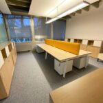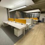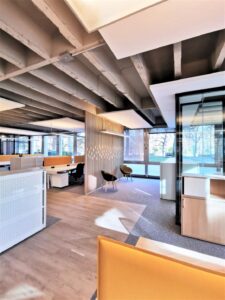 Nos architectes d’intérieur ont complètement redéfini les espaces afin de réorganiser la boite : open space, bureaux fermés, création de niches, d’un espace lounge, d’une salle d’attente, … Mais aussi placement de claustras, de panneaux et mobiliers acoustiques, de revêtements de sol et de l’entièreté du mobilier !