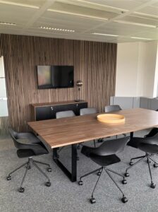 Séparer l’espace visuellement sans cloisonner tout en gérant l’acoustique, la solution proposée :